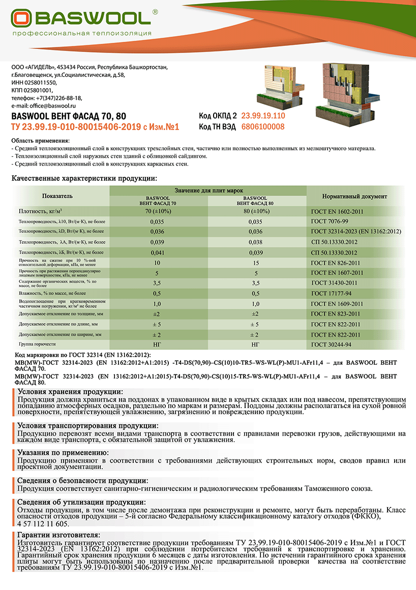 BASWOOL (Басвул) Вент Фасад 70
