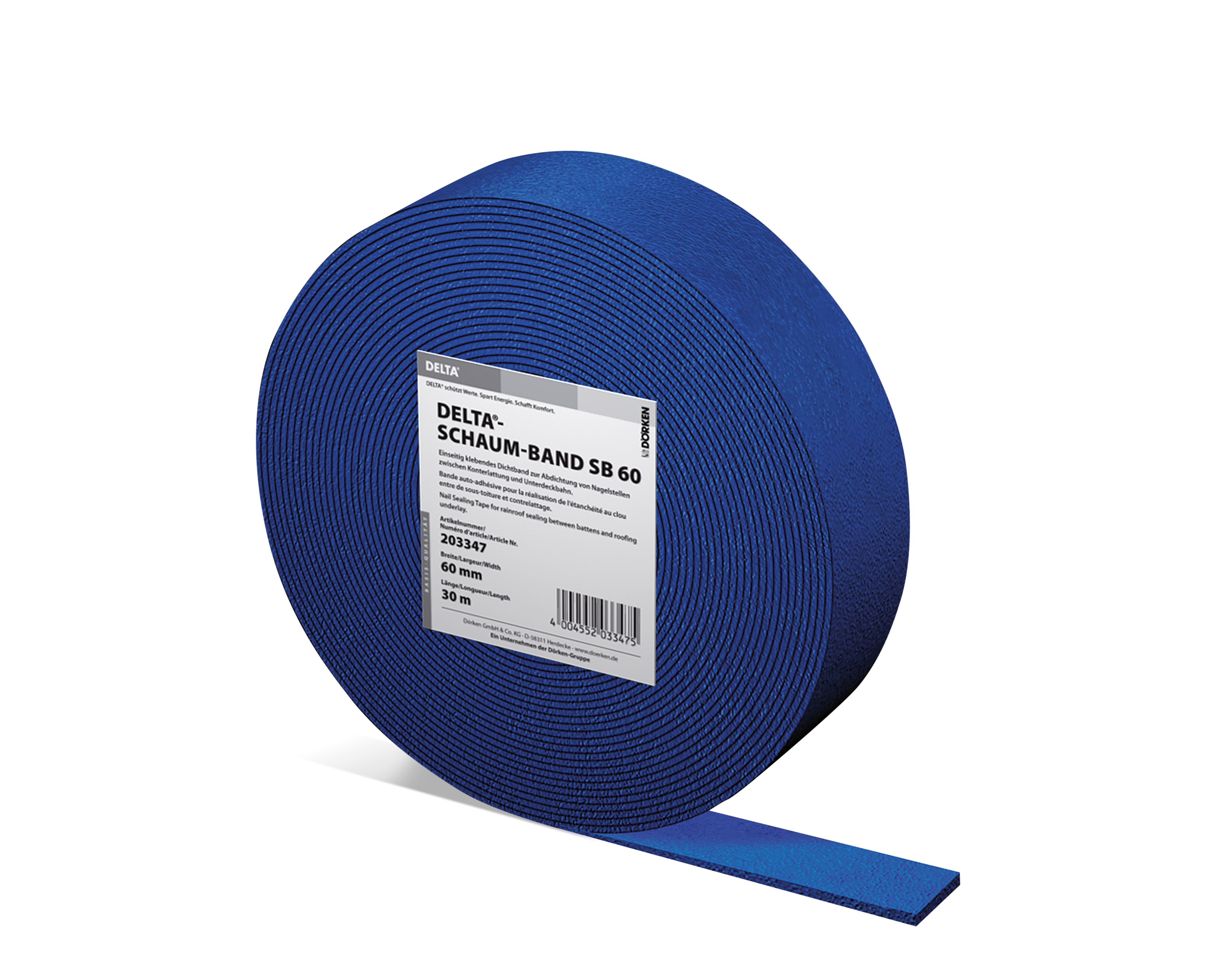 Delta Schaum Band SB 50 уплотнительная самоклеящаяся лента предназначена для защиты кровельного пирога от проникновения дождевой и талой воды через места крепления контробрешетки. Наклеивается поверх плёнки вдоль стропильных ног или на контробрешетку перед ее установкой.