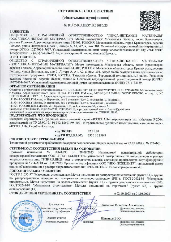 Благодаря составу и структуре, Изоспан P-200 паронепроницаем, обладает высокой прочностью и эластичностью. Свойства материала Изоспан P-200 позволяют применять его в качестве: